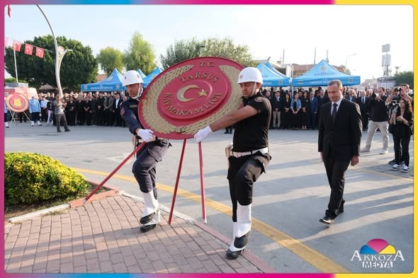 Cumhuriyet Meydanı’nda gerçekleştirilen törende, Tarsus Kaymakamlığı, Garnizon Komutanlığı ve Belediye Başkanlığı çelenkleri Atatürk Anıtı’na sunuldu.