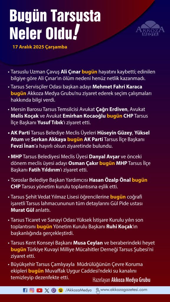 Tarsuslu Uzman Çavuş Ali Çınar bugün hayatını kaybetti; edinilen bilgiye göre Ali Çınar’ın ölüm nedeni henüz netlik kazanmadı.