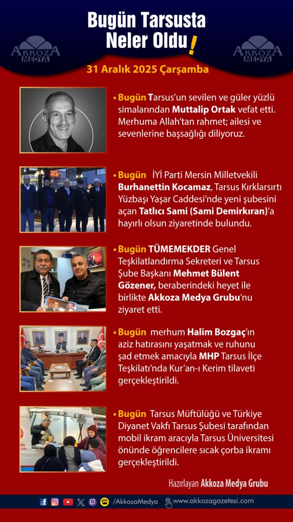 Bugün Tarsus’ta Neler Oldu.? 31 Aralık 2025 Çarşamba