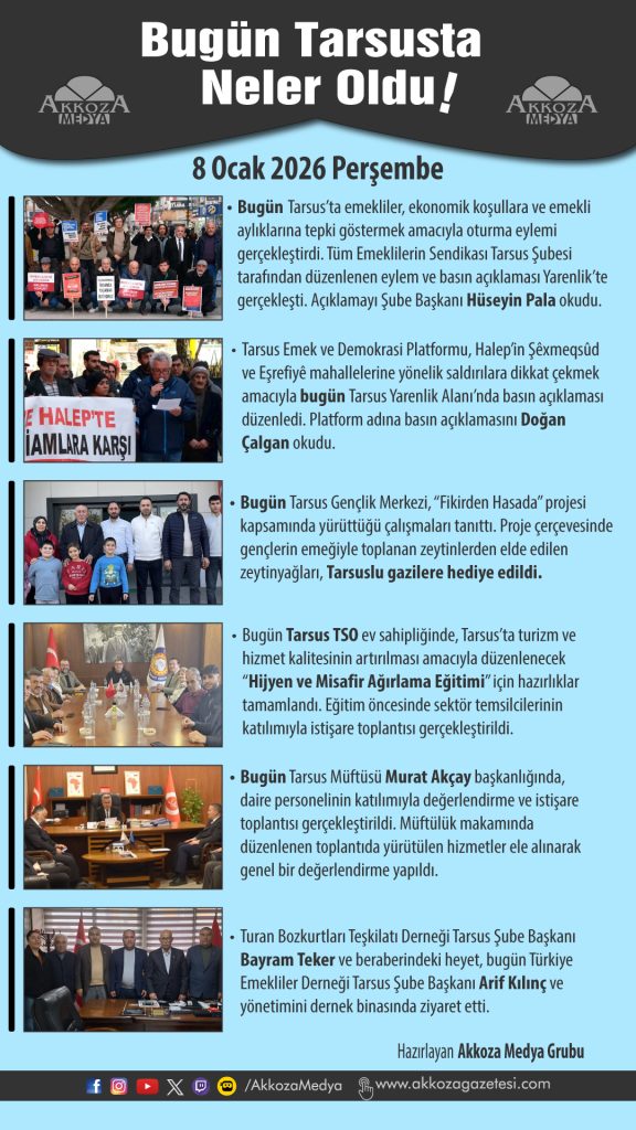 Bugün Tarsus’ta emekliler, ekonomik koşullara ve emekli aylıklarına tepki göstermek amacıyla oturma eylemi gerçekleştirdi. Tüm Emeklilerin Sendikası Tarsus Şubesi tarafından düzenlenen eylem ve basın açıklaması Yarenlik’te gerçekleşti. Basın açıklamasını Şube Başkanı Hüseyin Pala okudu.