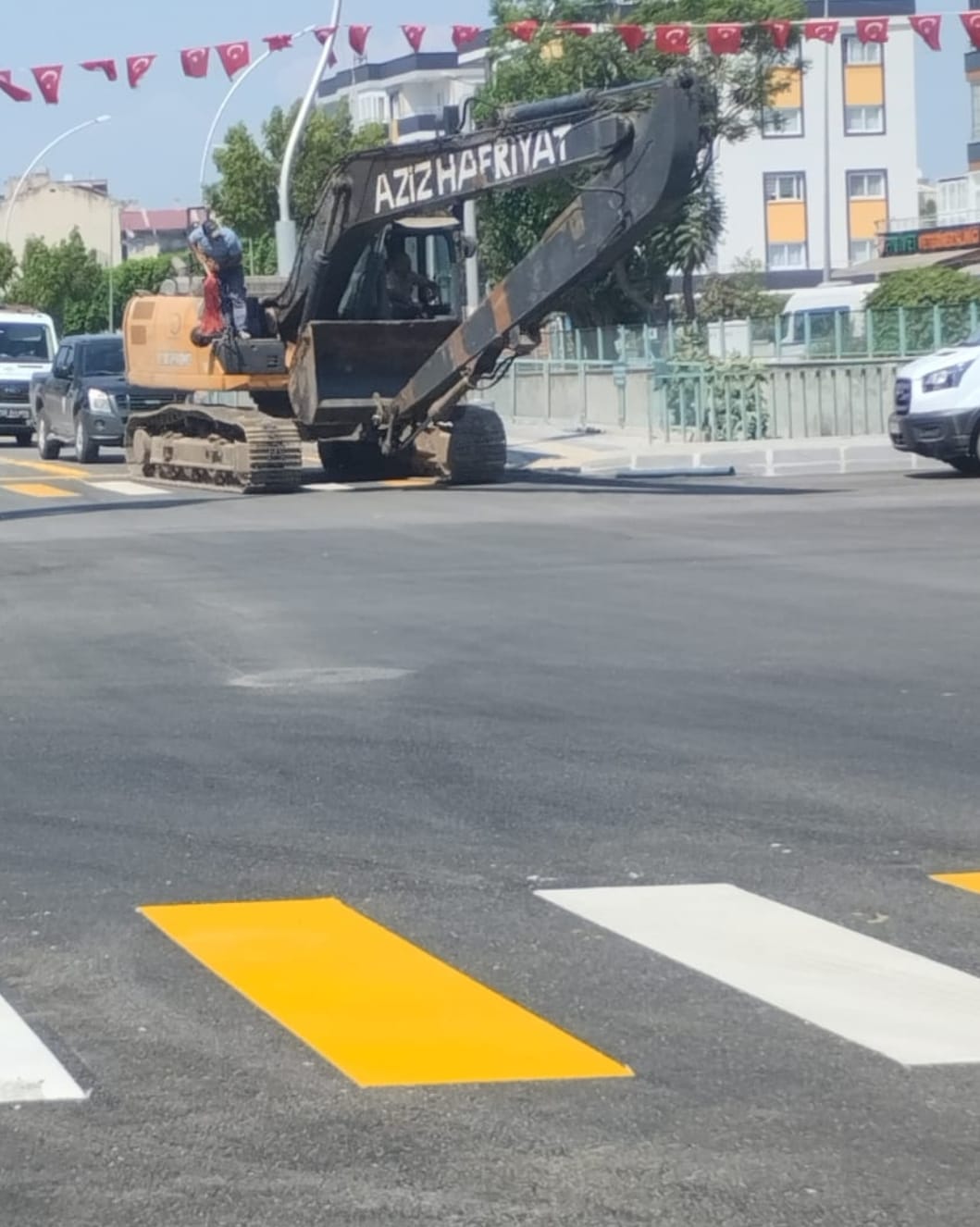 Büyükşehir Belediyesi ekiplerinin hummalı şekilde çalıştığı bölgede, asfalt serimi ve çizgileme işleminden dakikalar sonra ise kanal temizliği için bölgede bulunan DSİ’nin yüklenici firmasına ait paletli iş makinesi yeni yapılan yola girerek zemine hasar verdi.