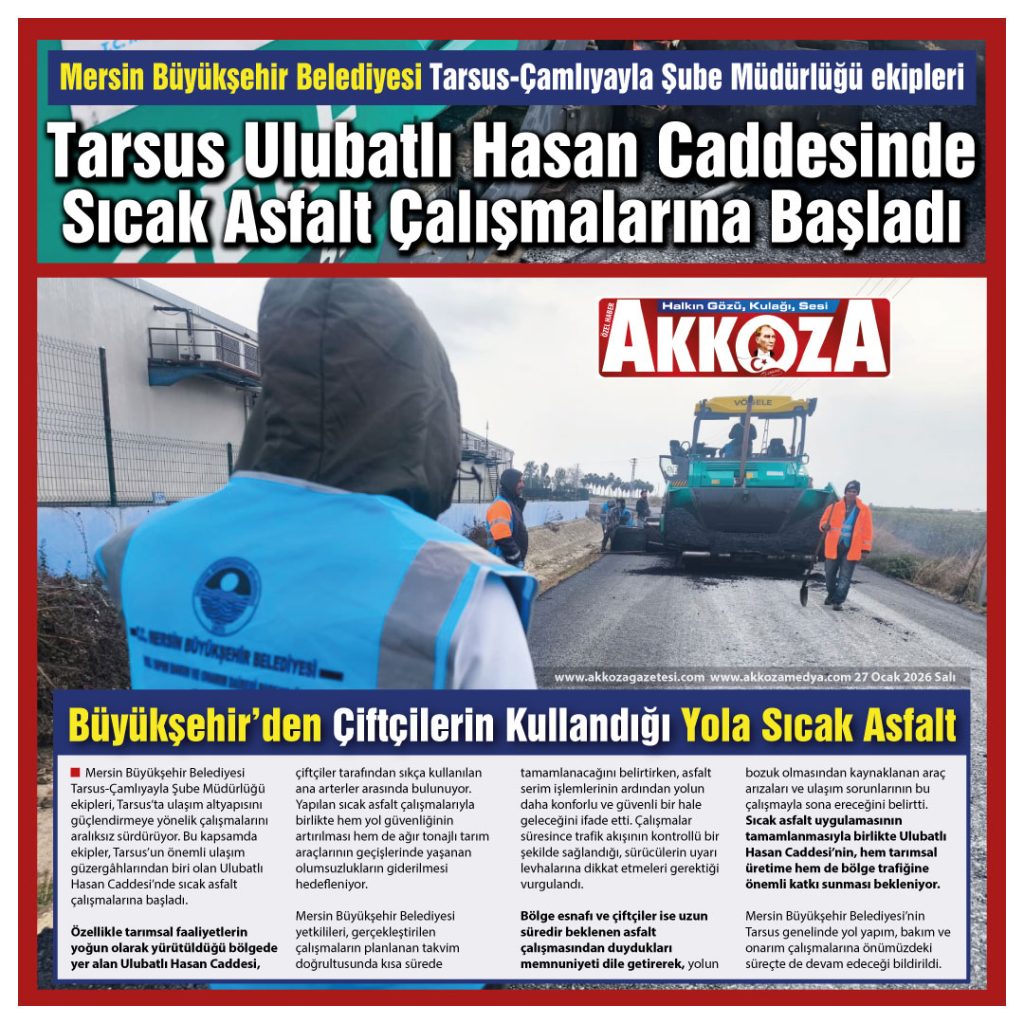 Mersin Büyükşehir Belediyesi Tarsus-Çamlıyayla Şube Müdürlüğü ekipleri, Tarsus’ta ulaşım altyapısını güçlendirmeye yönelik çalışmalarını aralıksız sürdürüyor. Bu kapsamda ekipler, Tarsus’un önemli ulaşım güzergâhlarından biri olan Ulubatlı Hasan Caddesi’nde sıcak asfalt çalışmalarına başladı.