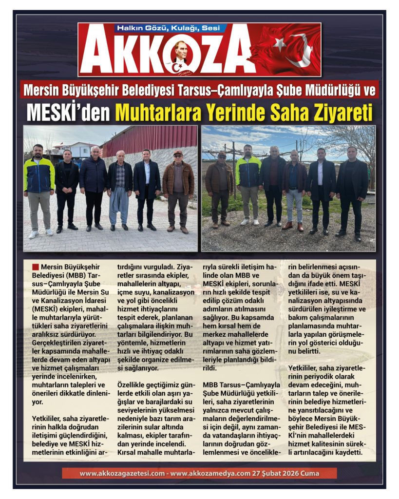 MBB Tarsus–Çamlıyayla Şube Müdürlüğü yetkilileri, saha ziyaretlerinin yalnızca mevcut çalışmaların değerlendirilmesi için değil, aynı zamanda vatandaşların ihtiyaçlarının doğrudan gözlemlenmesi ve önceliklerin belirlenmesi açısından da büyük önem taşıdığını ifade etti. MESKİ yetkilileri ise, su ve kanalizasyon altyapısında sürdürülen iyileştirme ve bakım çalışmalarının planlamasında muhtarlarla yapılan görüşmelerin yol gösterici olduğunu belirtti.