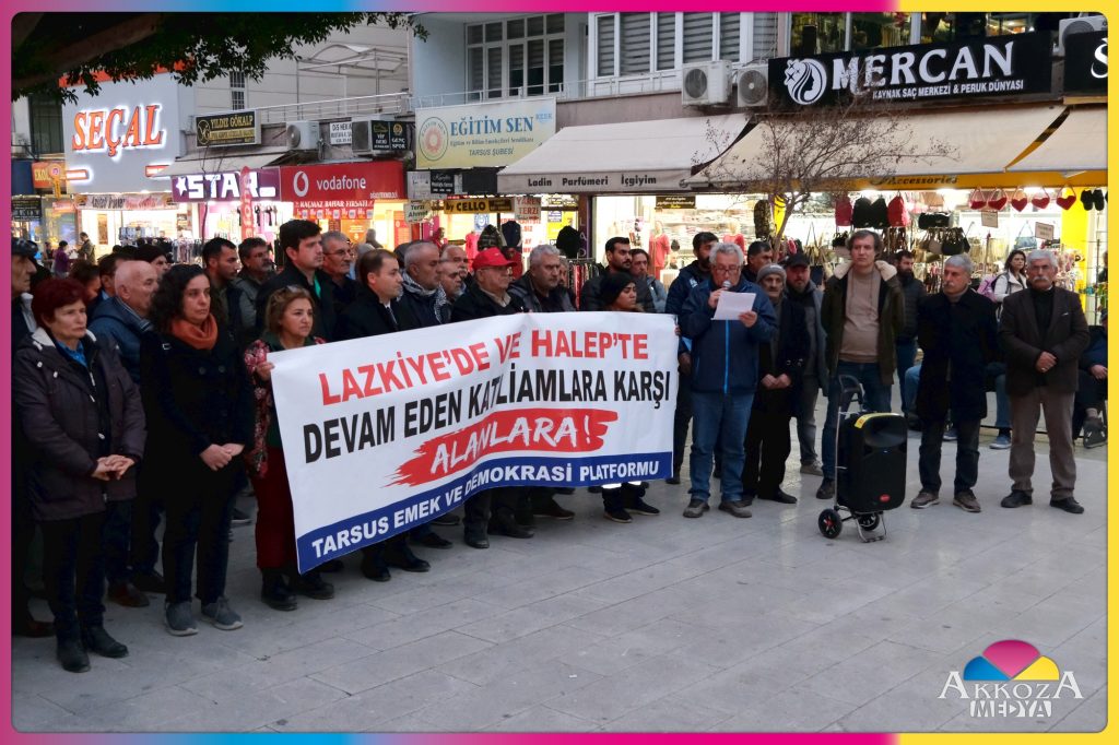 Tarsus Emek ve Demokrasi Platformu, Halep’in Şêxmeqsûd ve Eşrefiyê mahallelerine yönelik saldırılara dikkat çekmek amacıyla 8 Ocak 2026 Perşembe günü Tarsus Yarenlik Alanı’nda basın açıklaması düzenledi.