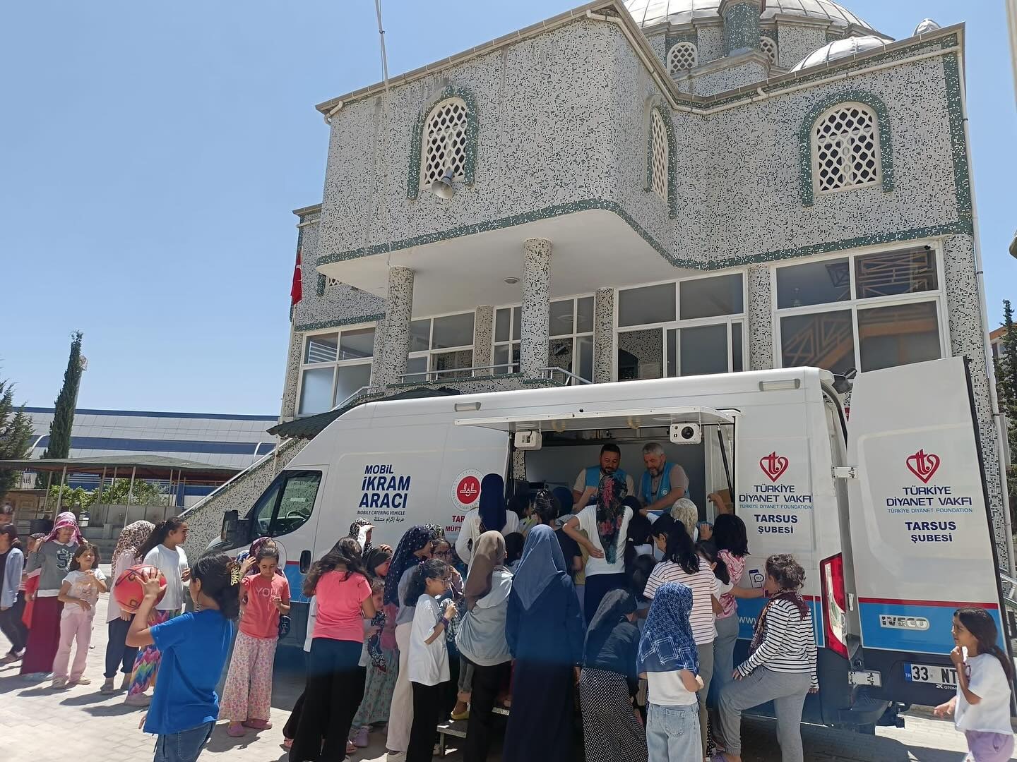 Tarsus Müftülüğü tarafından Aydoğanlar Camii Yaz Kur’an Kursu’na katılan öğrencilere, din görevlileri tarafından keyifli ve unutulmaz bir gün yaşatıldı. Türkiye Diyanet Vakfı (Tdv) Tarsus Şubesi’ne ait mobil ikram aracıyla öğrencilere limon dondurma ikram edildi.