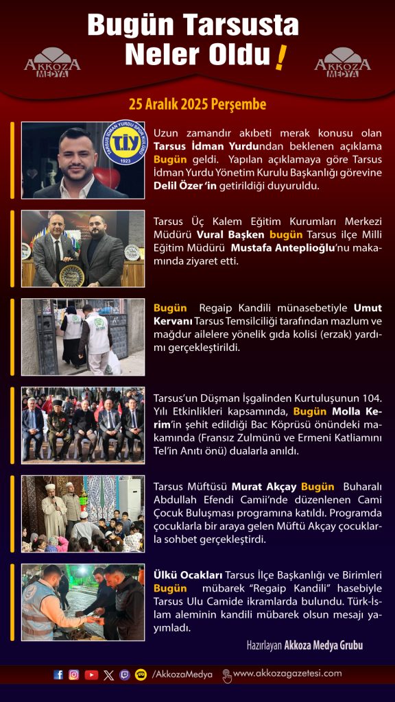 Tarsus’ta Bugün Neler Oldu – 25 Aralık 2025 Perşembe