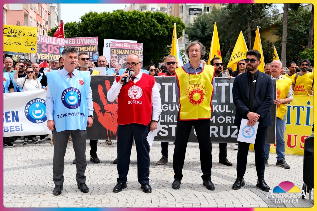 Ortak açıklamayı sendika başkanları birlikte okurken, yapılan konuşmalarda Şanlıurfa Siverek’te Ahmet Koyuncu Mesleki ve Teknik Anadolu Lisesi’nde yaşanan silahlı saldırının yalnızca bir olay değil, eğitim sisteminde giderek derinleşen bir sorunun yansıması olduğu vurgulandı.