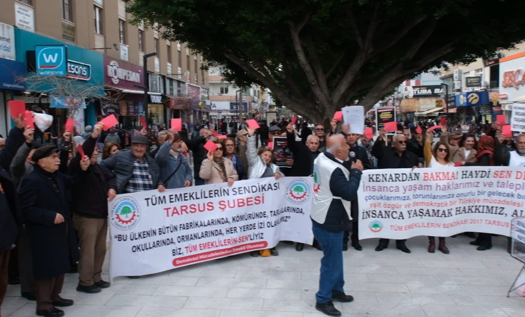 Basın açıklamasını Tüm Emekliler Sendikası 2017 Tarsus Şube Başkanı Hüseyin Pala okudu. Açıklamada, emeklilerin yıllardır yoksulluğa ve sefalet koşullarına mahkûm edildiği ifade edilerek, mevcut ekonomik politikaların emeklileri görmezden geldiği vurgulandı. Emeklilerin insanca yaşam koşullarına kavuşması gerektiği belirtilen açıklamada, maaşların açlık sınırının altında kaldığına dikkat çekildi.